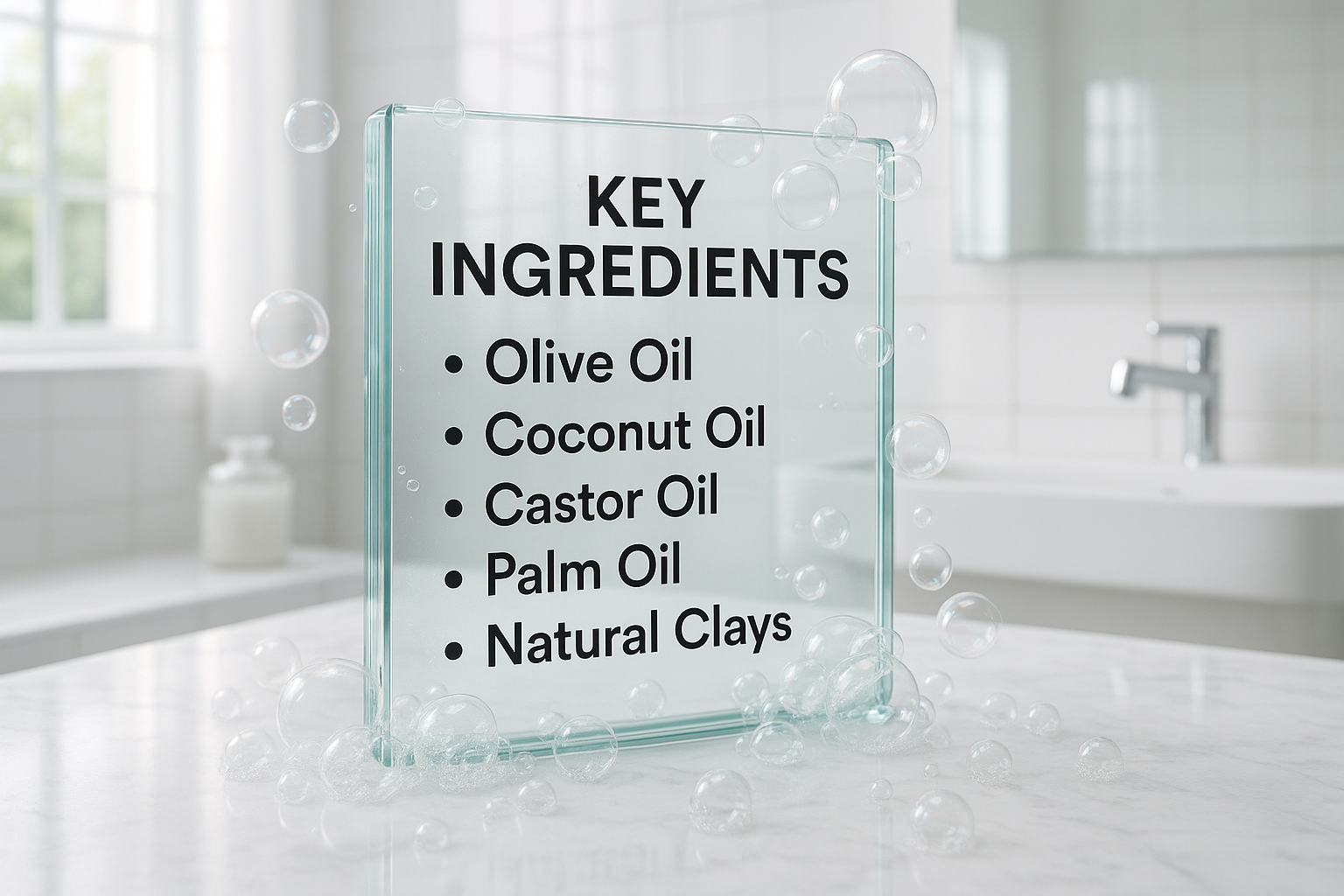 Saponified Organic Oils Of ( Olive Oil, Coconut Oil, Palm Oil, Castor Oil), Aqua, Kaolin Clay and Essential | Fragrance Oils